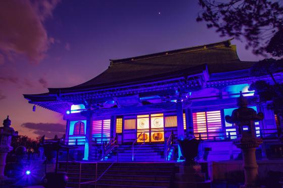 今年も期間中は毎日18:00から22:00の間、本堂を青くライトアップします。(雨天決行)